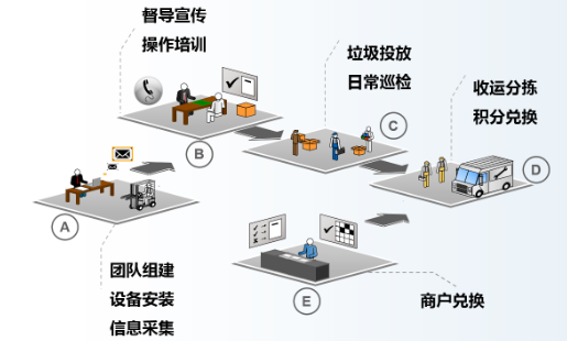 平湖市智能垃圾分類一體化項(xiàng)目采用聯(lián)運(yùn)環(huán)境四化全服務(wù)升級模式,其技術(shù)特點(diǎn)如下: